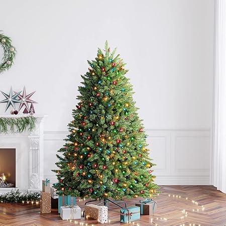 Amazon Com 7ft New England Pine Artificial Christmas Tree With 400 Clear Lights And 1044 Bendable Branches Home Kitchen